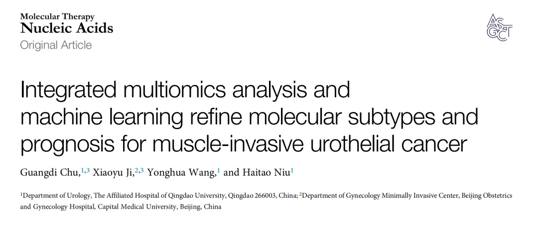 这项发表于Molecular Therapy: Nucleic Acids的研究,尝试解决一个长期困扰膀胱癌临床与研究领域的问题:为什么同样分期、接受类似治疗的肌层浸润性尿路上皮癌(MUC)患者,预后与治疗响应却常常呈现巨大差异?传统临床分期体系主要依赖病理与影像学指标,但越来越多证据表明,真正决定疾病行为的差异来自分子层面的异质性。该研究的核心目标,是通过系统整合多组学数据与机器学习方法,建立更稳定、可复现且具临床预测价值的分子分型与预后模型,从而为精准分层与治疗策略优化提供数据基础。