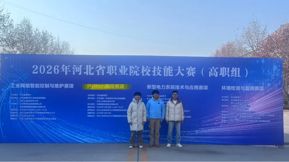 近日,2026年河北省职业院校技能大赛“Python编程”赛项(高职组)在河北省石家庄圆满落幕。我院云计算技术应用专业参赛团队凭借过硬的专业技能、默契的团队协作与创新的作品呈现,从全省72支参赛队伍中脱颖而出,成功斩获团体二等奖。