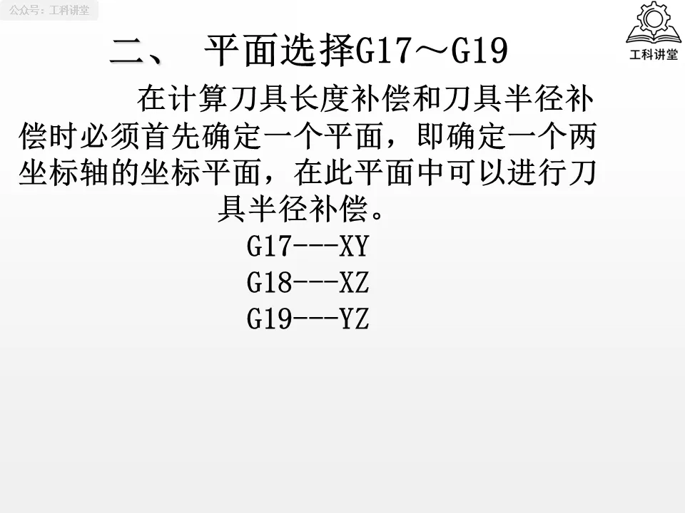铣削加工大多在平面上进行,G17、G18、G19 分别对应 XY、XZ、YZ 平面。比如铣平面槽用 G17,铣轴类零件的端面槽可能用到 G18。选对平面是后续刀具补偿生效的前提,这一步可不能马虎。