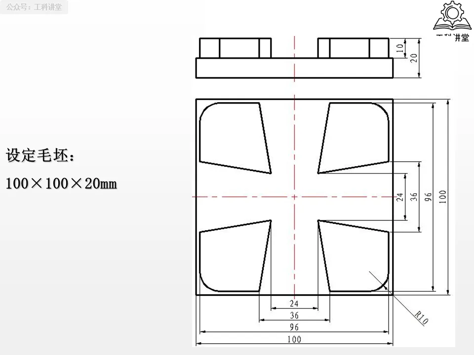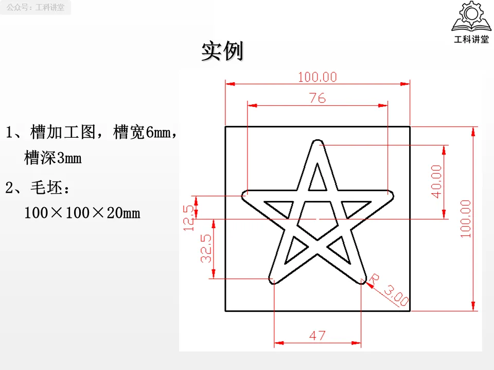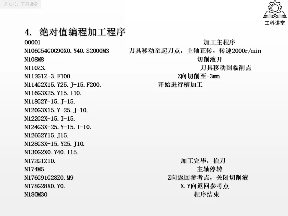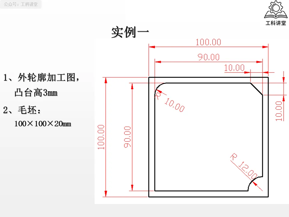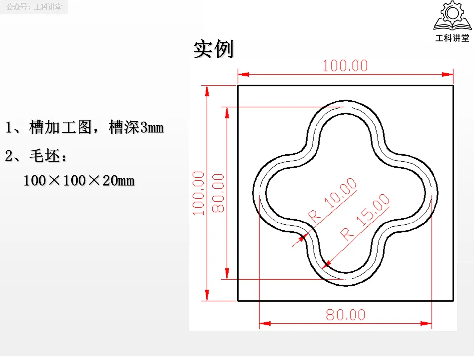 理论讲再多不如一个案例来得实在,我们以 100×100×20mm 的毛坯加工 3mm 深槽为例,看看绝对坐标和增量坐标的编程差异。