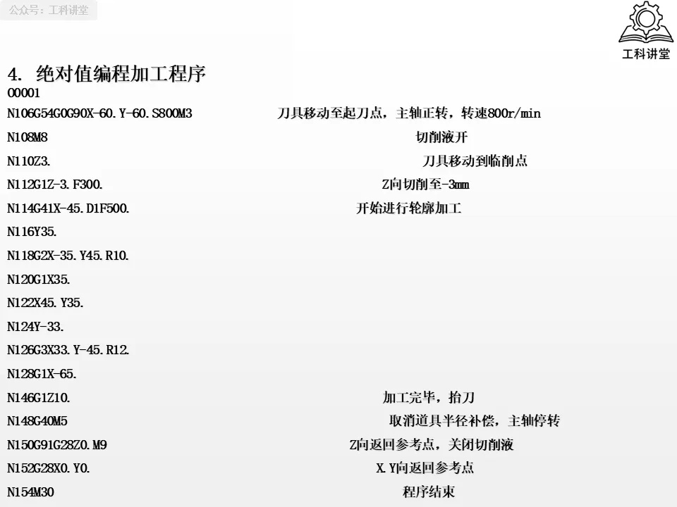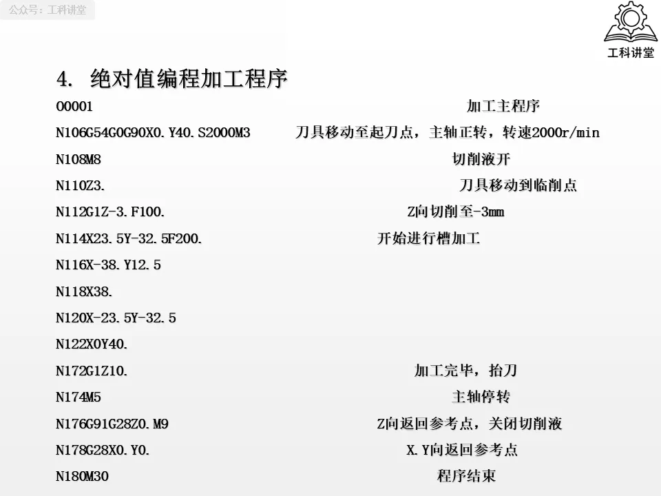 程序里的每一个 X、Y 坐标都以 G54 原点为基准,比如G90 G01 X23.5 Y-32.5 F200,直接指定刀具的目标位置,调试时能直观看到坐标偏差。
