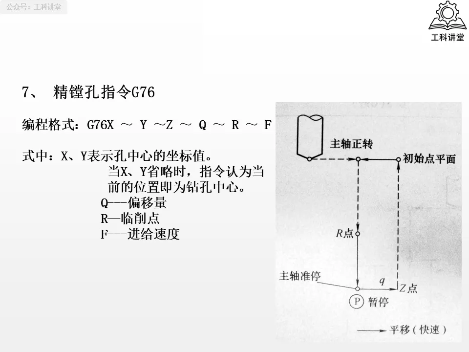 钻孔、镗孔这类重复动作,不用逐行编代码,用固定循环指令就能一键搞定。比如 G81 用于普通钻孔,G83 是深孔钻,会自动抬刀排屑;G76 是精镗孔,镗完后刀具会偏移再退刀,避免划伤孔壁。