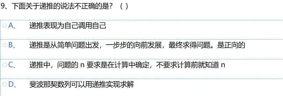 递推并不是指函数或过程自身调用自身的方式,而是一种从简单问题出发,逐步推导出复杂问题解决方案的方法。递归才是自己调用自己。