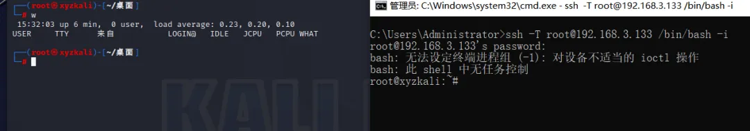 ```bashssh -T root@192.168.3.133 /bin/bash -i#使用此方式隐身登录系统,不会被w、who、last等指令检测到。w :主要用于显示当前登录用户的所有信息,包括正在执行的命令。last :命令主要用于显示用户的登录历史记录。这个命令会读取/var/log/wtmp文件(在某些系统中可能是/var/log/btmp)```