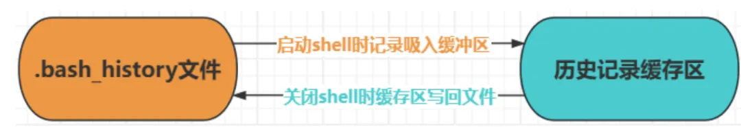 > 1、当 Linux 系统启动一个 Shell 时,Shell 会从 .bash_history 文件中,读取历史记录,存储在相应内存的缓冲区中。