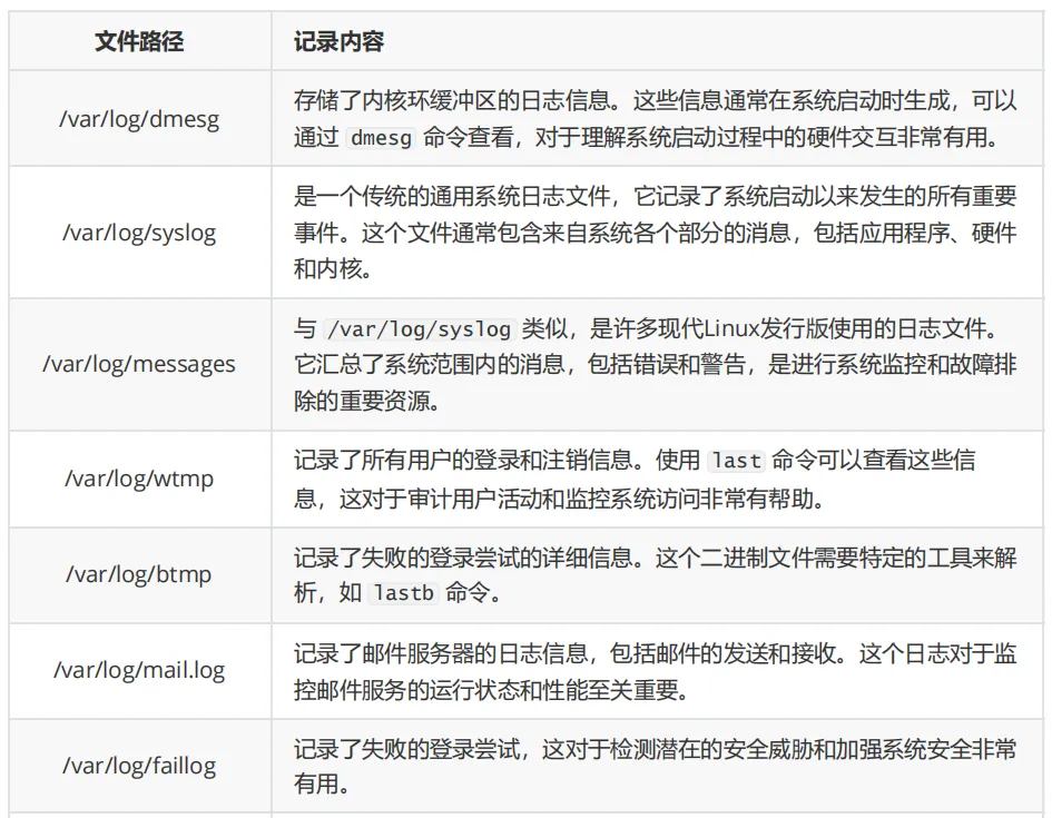 > 由于Linux的设计采用万物皆文件的思想,所以Linux系统的日志基本都是以文件的形式体现,所以相对Windows而言,Linux的日志清理和修改相对比较容易