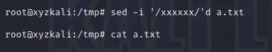 ```bashsed -i '/要删除的内容/'d 目标文件sed -i '/xxxxxx/'d a.txt```