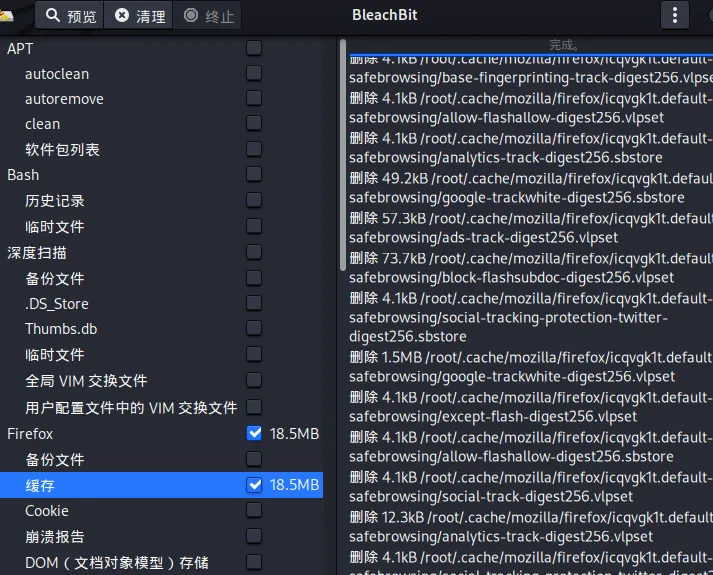 > BleachBit 是一个开源的系统清理工具,支持 Windows 和 Linux。它的作用是通过删除那些不必要 的文件来释放硬盘空间,同时也能有效增强隐私保护。它不仅清理缓存、Cookies、历史记录等,还能清除临时文件和损坏的快捷方式,帮助你把系统维护得更干净、更高效