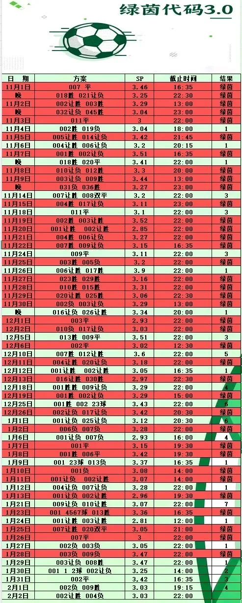 2月2日绿茵代码3.0计划 今日已更新