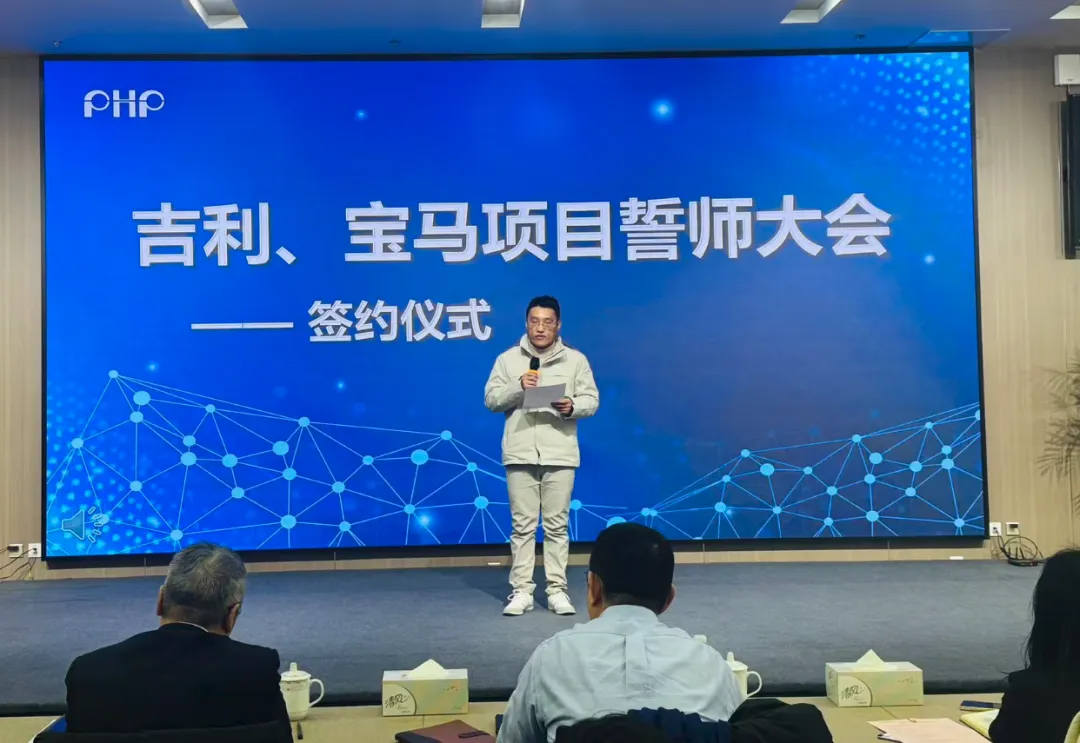 徐锋总经理发表了振奋人心的动员讲话,为全体PHP人指明了战略方向、坚定了必胜信心。他强调,吉利及宝马项目的顺利实施,将成为奠定公司未来3-5年发展格局的基石。徐总要求项目团队必须目标一致、敢于担当、高效沟通、坚持不懈,以确保项目高质量推进。他表达了对PHP团队强大战斗力的充分信任,坚信项目团队必能克服一切困难,取得项目成功。