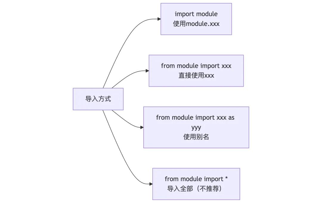 # 导入包import my_package# 导入包中的模块import my_package.module_a# 导入包中的子包import my_package.sub_package.module_c# 导入包中的函数from my_package.module_a import func_a# 相对导入from . import module_a # 从当前包导入from .sub_package import module_c # 从子包导入