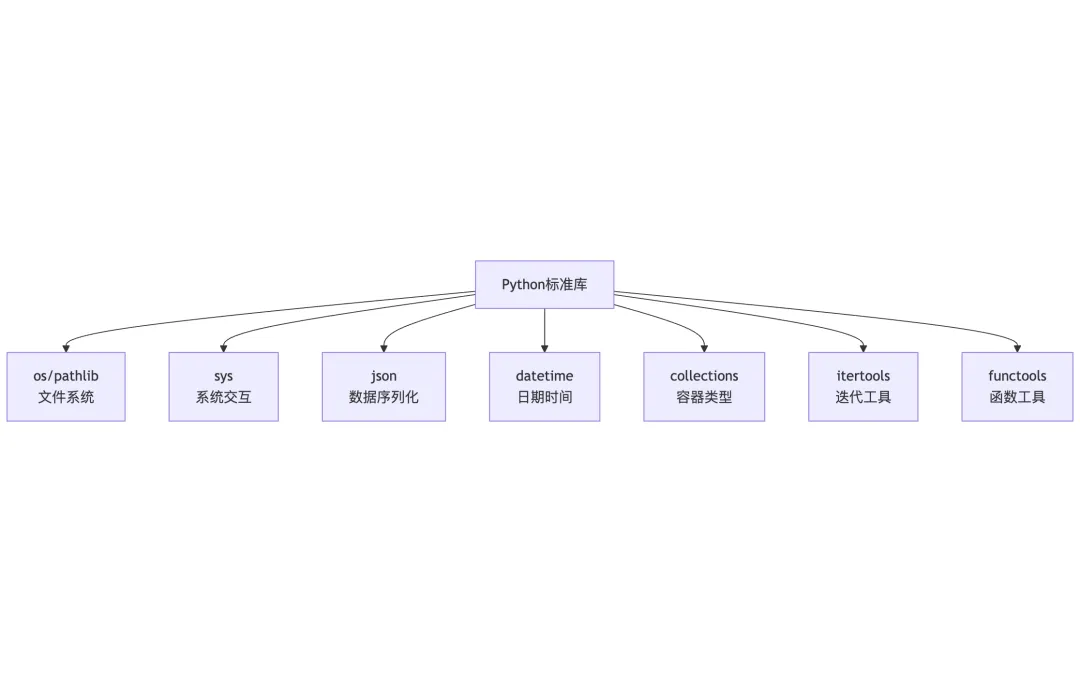 # json - JSON处理import jsondata = {'name': 'Python', 'version': 3.12}json_str = json.dumps(data)parsed = json.loads(json_str)# datetime - 日期时间from datetime import datetime, date, timedeltanow = datetime.now()today = date.today()tomorrow = today + timedelta(days=1)# collections - 容器数据类型from collections import Counter, defaultdict, OrderedDictcnt = Counter('abracadabra')d = defaultdict(list) # 默认值为list的字典# itertools - 迭代工具import itertoolslist(itertools.chain([1, 2], [3, 4])) # [1, 2, 3, 4]list(itertools.combinations([1, 2, 3], 2)) # [(1, 2), (1, 3), (2, 3)]# functools - 函数工具from functools import reduce, lru_cache@lru_cache(maxsize=128)deffib(n):return fib(n-1) + fib(n-2) if n > 1else n