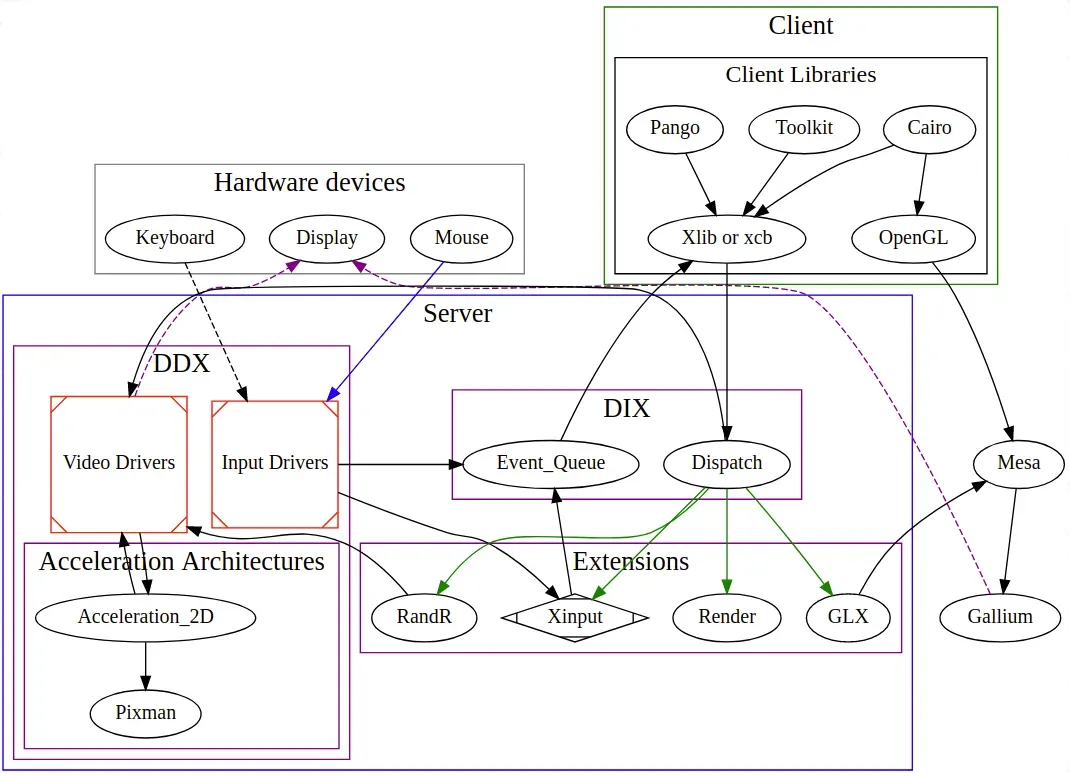Xorg 内部的组件架构如下: