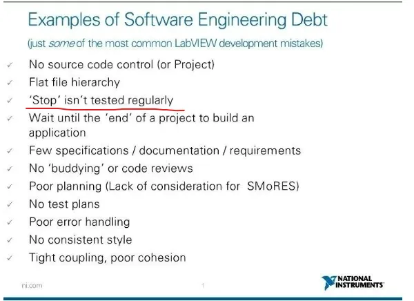 :强制中止VI时,VI的状态无法保证,可能导致资源(如文件、硬件)未正确释放。建议设计程序化的停止方法,让VI正常完成执行。