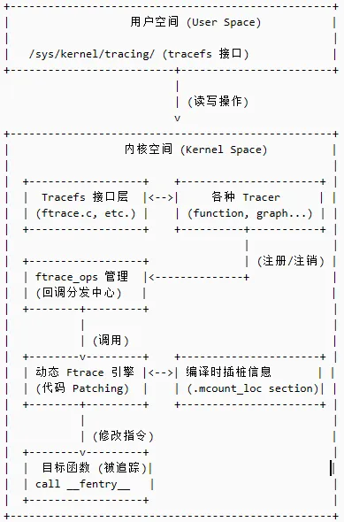 Ftrace的架构精巧而分层,各司其职。下图展示了其核心组件之间的关系: