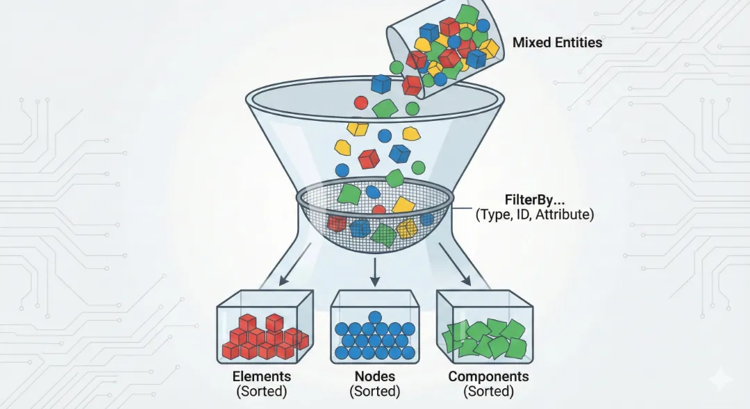 东西选好了,接下来该动刀子了。我想把选中的节点向 X 轴移动 10mm,或者把选中的单元放入一个新的 Component。下一期,我们将进入**《实战篇:修改与编辑》**,看看 Python 如何操控模型发生改变。