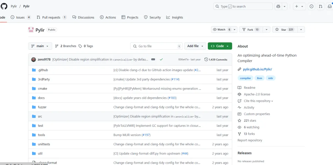 什么是 Pylir?你可能写过 Python 脚本,然后总是被“解释器启动慢”、“运行速度不够快”拖后腿。Pylir 就是为了解决这些痛点而生的。Pylir 是一个面向 Python 的 Ahead-Of-Time 编译器,用 C++17 从零打造,深入 MLIR 和 LLVM,想把你写的 .py 直接编译成原生可执行文件 (.exe 或 ELF),而且还要尽可能地贴合 Python 语义和性能预期。