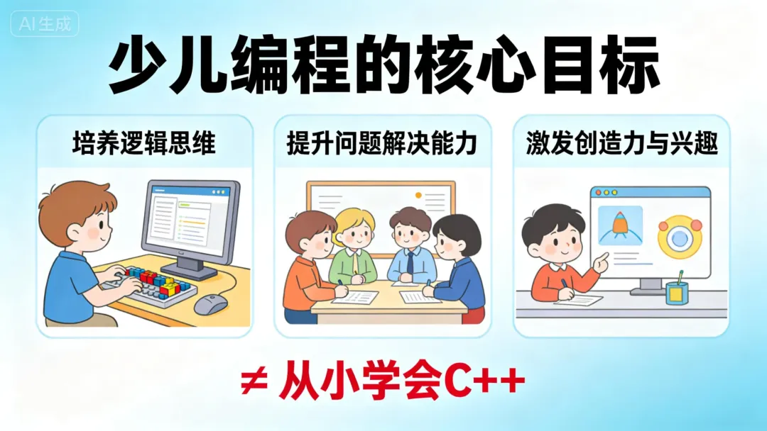 然而,少儿编程的目标并非是让孩子们从小就学会C++。
