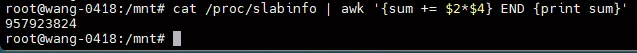 cat /proc/slabinfo | awk '{sum += $2*$4} END {print sum}'观察 slab 占用最多的前 20 个 cache
