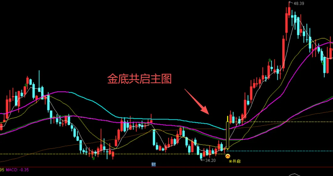 公式通过5条长短期均线(5/15/58/118/450/550日)构建趋势骨架,结合自研的“起爆线”作为关键攻击位。它主要识别三类机会: