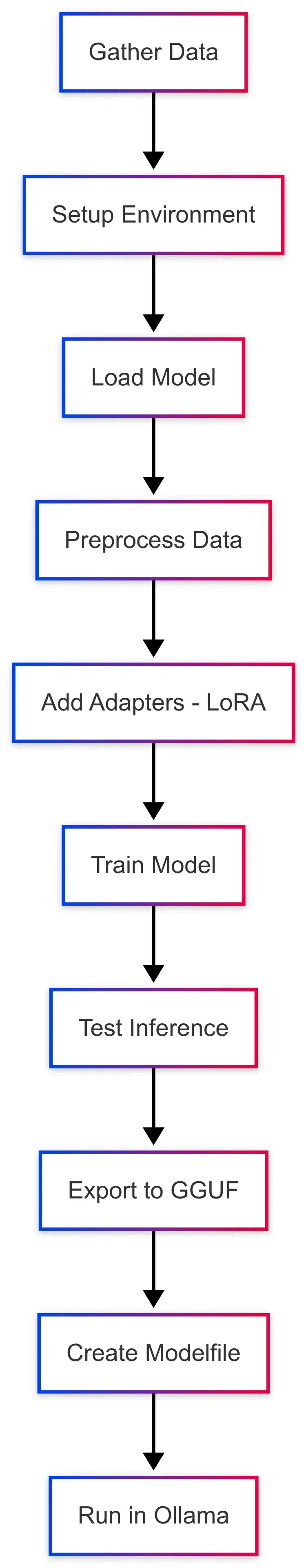 下面是完整流程。我们将使用 Unsloth(免费的开源快速微调工具)和 Google Colab(免费的云 GPU,无需昂贵硬件)。基础模型:Phi-3 Mini(小而快)。