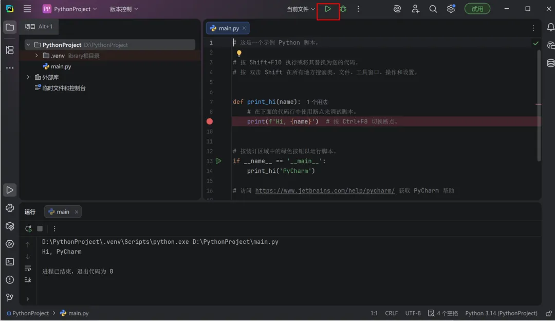 至此,Python和PyCharm都成功安装运行。