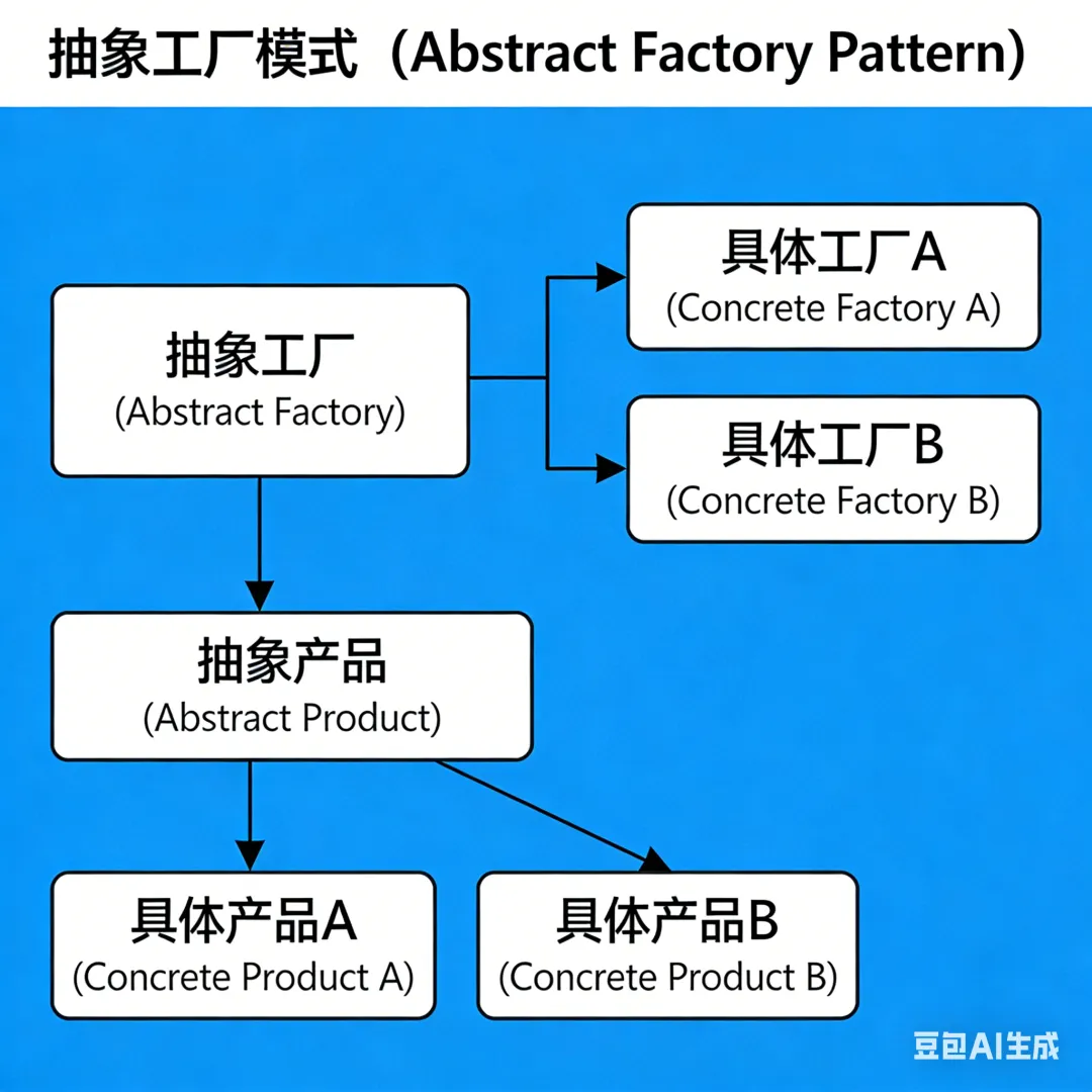 核心思想:在工厂模式的基础上,支持创建“一组相关联的对象”,无需指定具体类,而是通过抽象接口统一管理,适配更复杂的场景。