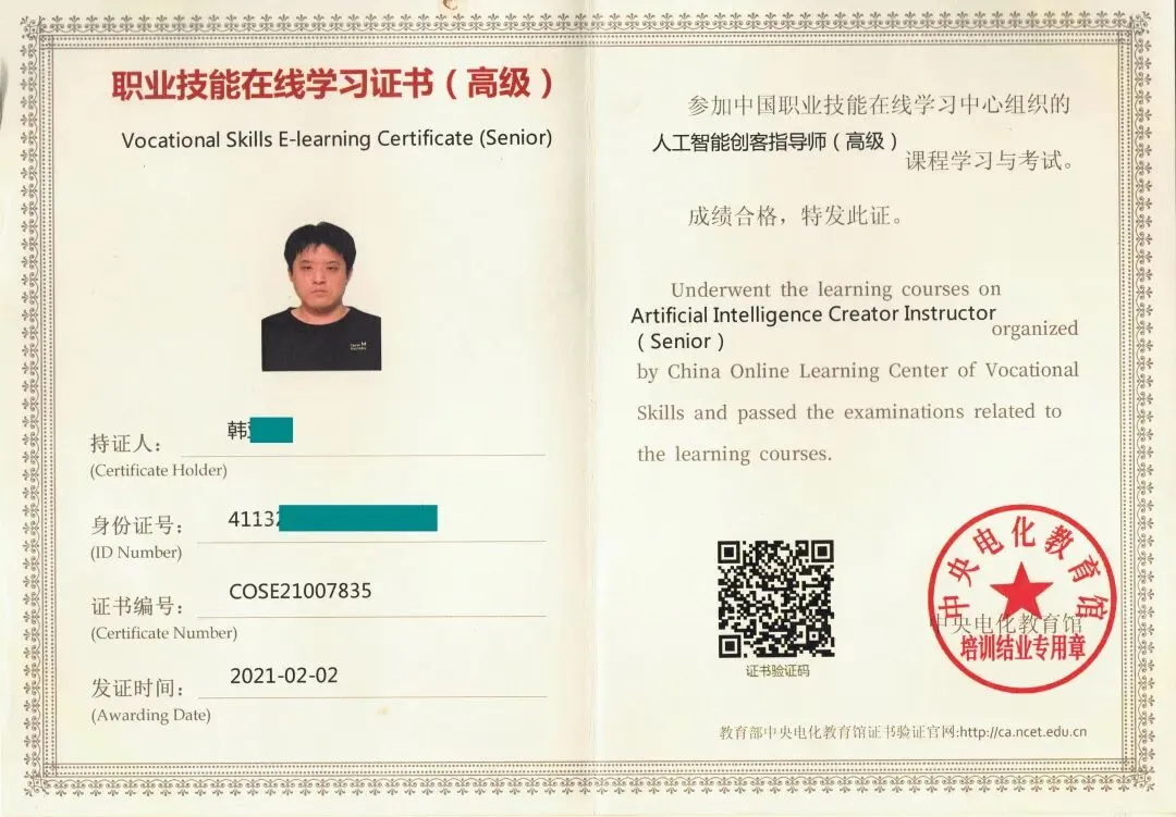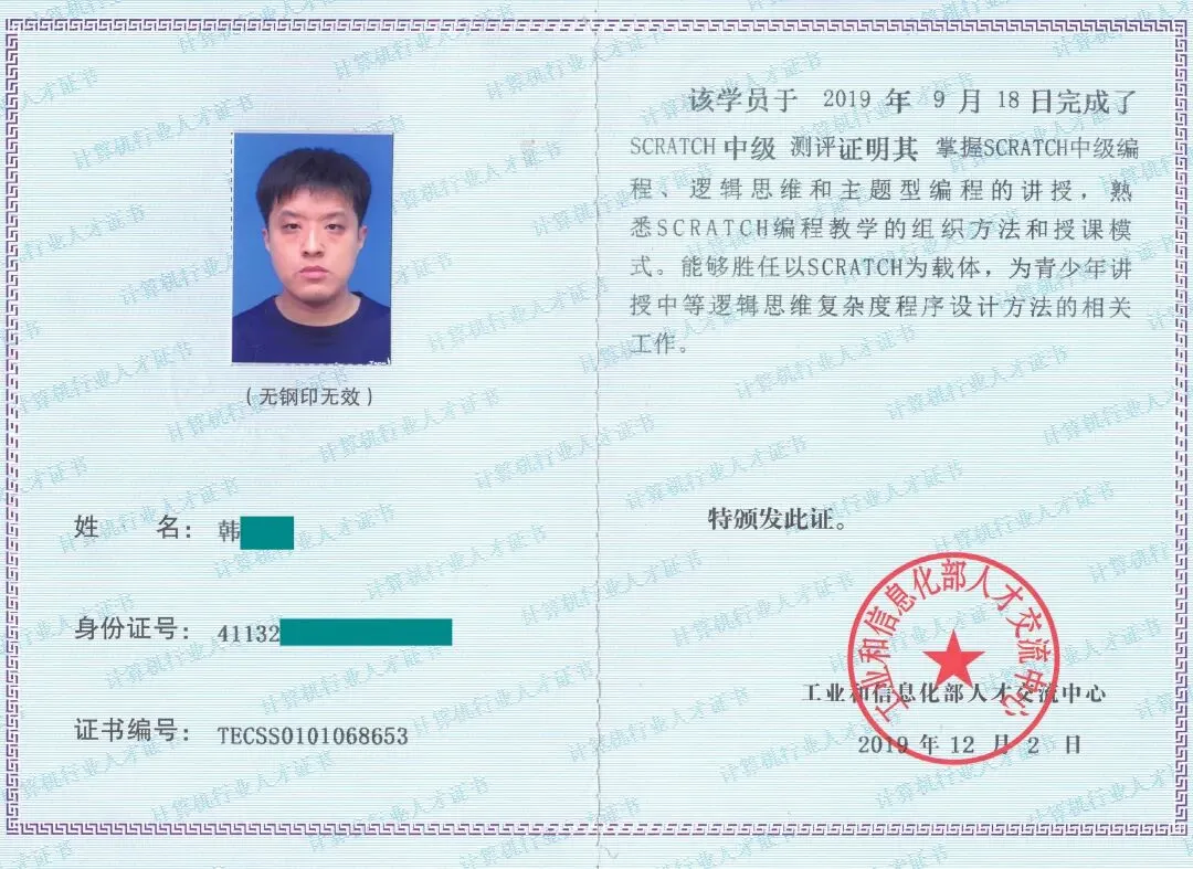 这些成绩的取得,除了有家长朋友的大力支持,更仰赖我们的韩老师,因为,即便韩老师是计算机软件专业毕业,这些年也一直在持续学习精进,多次参加国家级培训并取得相关证书⬇️,并且一直把国际上最前沿的技术进展和热点引入课堂,让孩子们紧跟时代发展。同时,韩老师专注于儿童科技教育的热情和耐心,也一直引领着学员、感染着家长,受到家长和孩子们的一致好评。另外,韩老师还长期指导和支持油田实验小学和三小的编程和人工智能教育,两个学校的学生都有颇多收获。