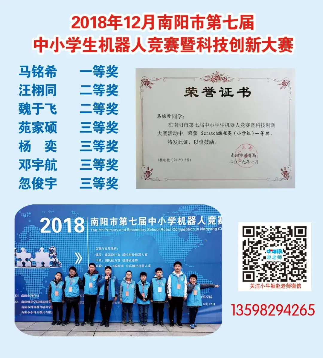 2016年3月,根据社会科技发展和孩子们应对未来的需要,我们在小牛顿科学班的基础上创办了在南阳数一数二的机器人、编程课(Scratch、Python、C++),2023年10月,我们又进行了课程升级,引入了开源硬件和人工智能。十年来,有四百多名小朋友参与学习(绝大多数学员是持续数年的学习),收获多多。