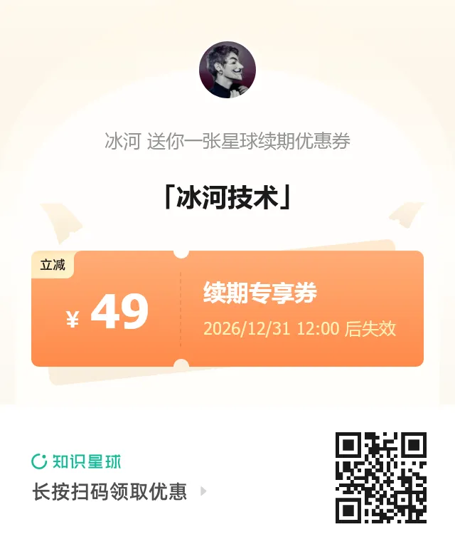 - 回复 :在公众号 冰河技术 回复 星球 领取优惠券加入星球。