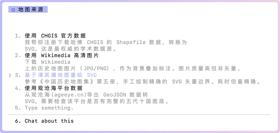 一开始我的需求很模糊,我问 Claude Code :有什么办法可以调用到完全正确的不同年份的五代十国时期的地图吗?