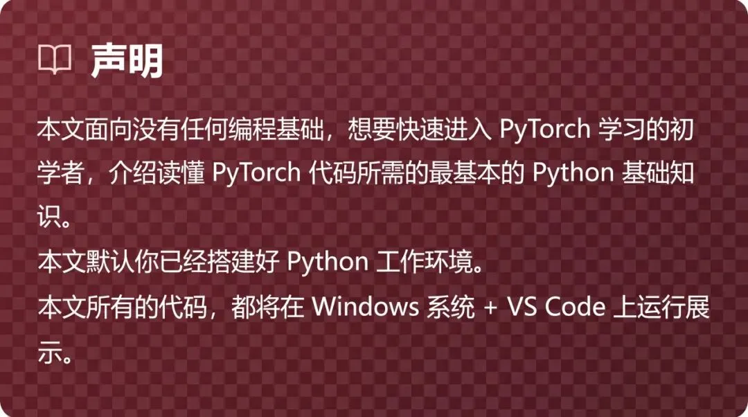 相反,只需掌握少量、但高频且关键的 Python 基础,就足以看懂并理解大部分 PyTorch 代码。