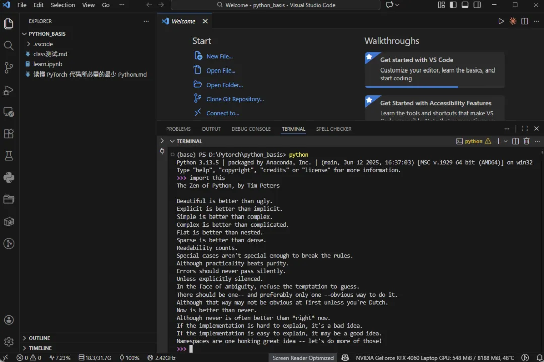 因此,在入门 PyTorch 时,并不需要系统地学习大量 Python 语法。
