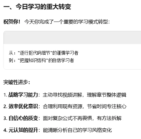 3️⃣心得:难点在于如何将“数学公式”转换为Numpy的表述。AI在这点做得很好:【先分步】,将公式拆成一小段、一小段,每段都简单得不得了;再将他们组合在一起,便成为了完整的公式。这样将大问题拆分为小问题的思想,不就是一种典型的计算思维么~挺好的挺好的。