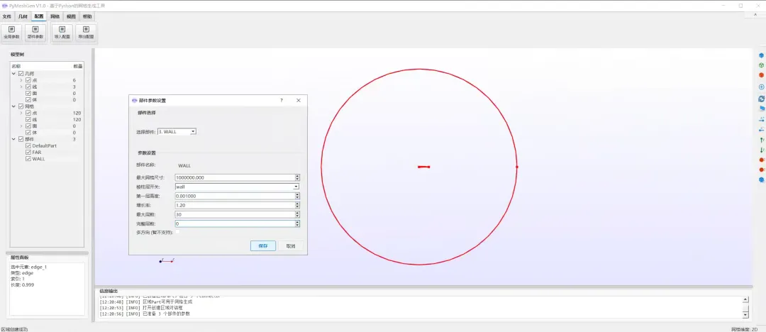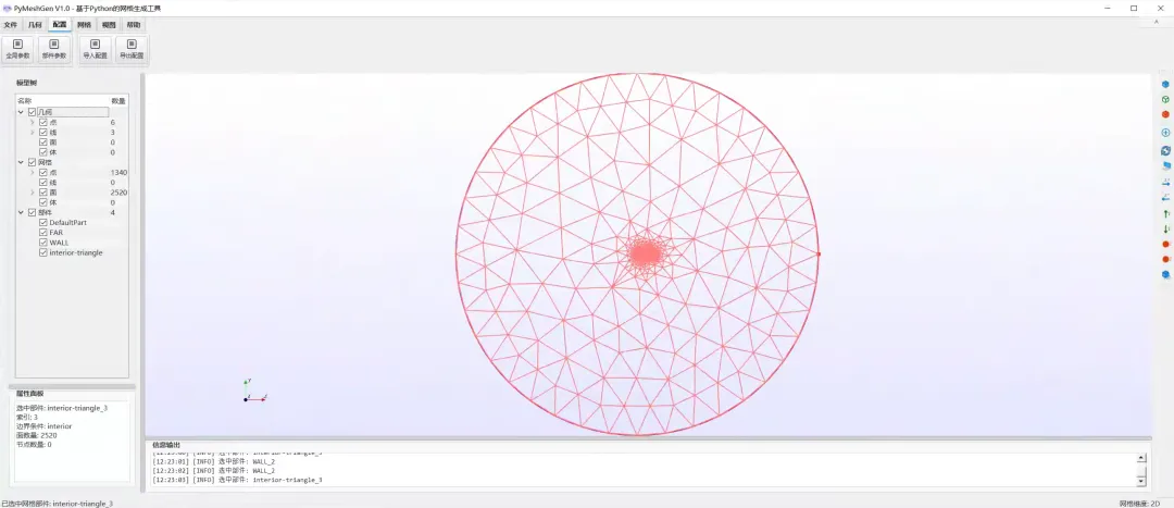 PyMeshGen的线网格生成和区域创建功能为用户提供了二维网格生成工具。通过直观的GUI界面和参数配置,用户可以快速生成高质量的网格数据。