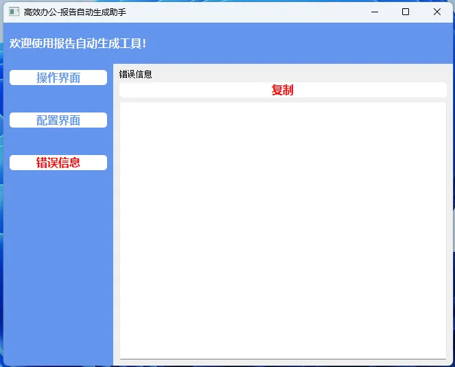 - 错误页:生成失败自动记录日志,一键复制发给技术排查,不用翻复杂文件。