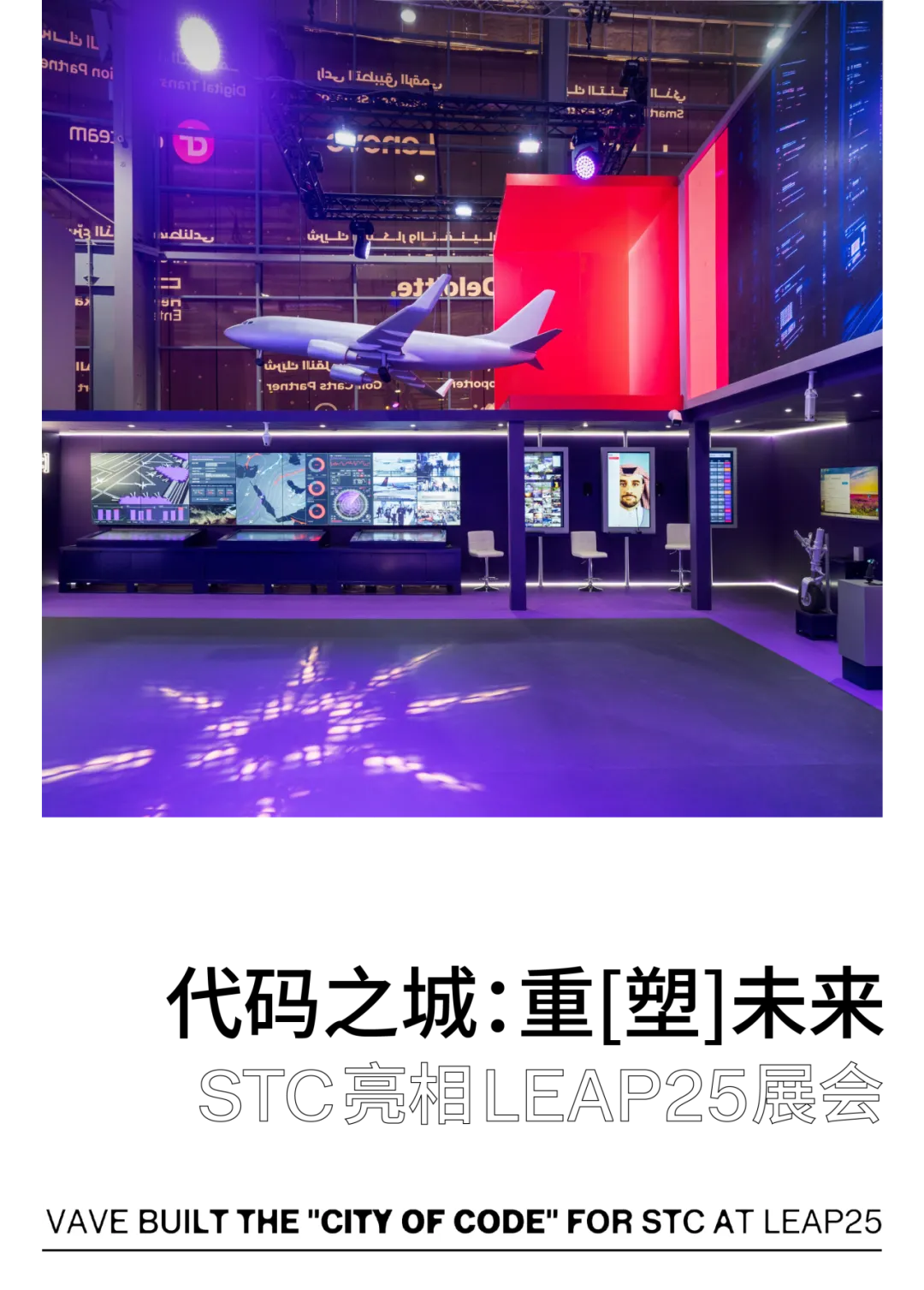 2025年,在利雅得LEAP科技峰会上,VAVE为沙特电信集团stc打造了最大独立展台——「代码之城」沉浸式主题展区,向世界呈现了一种关于数字未来的全新语法与可能。