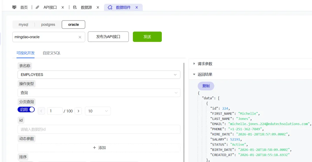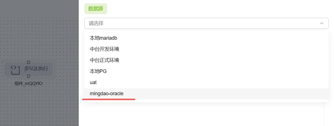 1、数据源支持Oracle数据库(以Oracle19c环境开发)3、工作流SQL相关组件同时支持选择Oracle数据源Oracle作为一个老牌数据库,在很多业务系统都有使用,本人所在的公司使用了Oracle12c十年之久,老旧的业务代码越发开发困难,不妨尝试我们这个工具,让数据焕发新的活力。这次兼容Oracle数据库也是看到小伙伴的需求,我们加紧开发了一个月