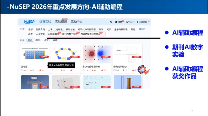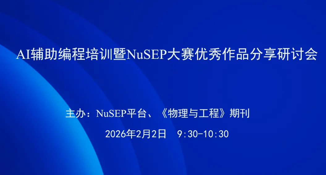 2026年2月2日上午,“AI辅助编程培训会暨NuSEP大赛优秀作品分享研讨会”在腾讯会议、SciOpen视频号、寇享等平台同步直播并圆满落幕。本次研讨会聚焦“AI赋能物理教育”,搭建了一个“接地气、有干货”的交流平台,共话AI辅助编程的最新进展与实战经验。