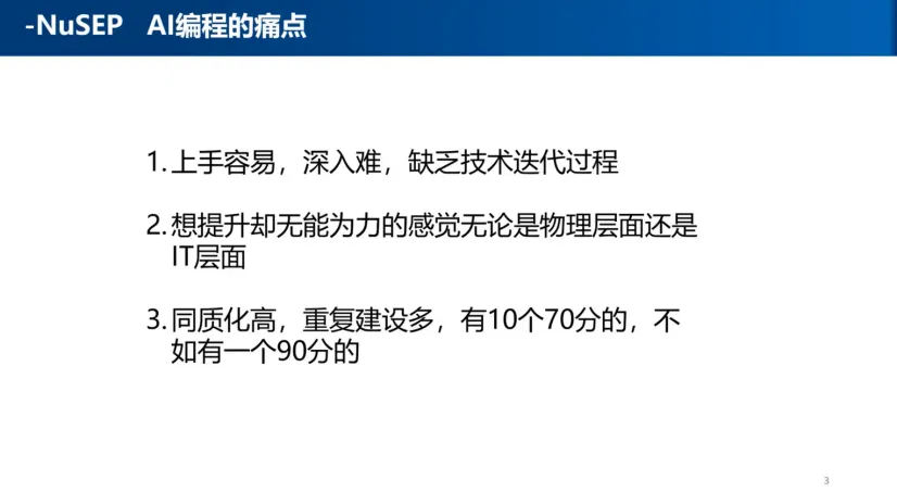 随后,清华大学顾晨教授就NuSEP平台AI辅助编程的建设情况进行了简要通报。顾教授针对目前AI编程“上手容易深造难”、“同质化较高”等痛点,提出了NuSEP平台的解决思路:通过征集稿件,集结优秀团队力量进行技术迭代,将多个“70分”的作品合并打造成“90分”的精品,并实现全过程留痕与开源共享。