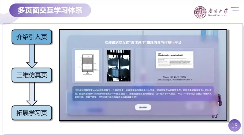 分享了“交互式液体悬浮物理仿真与可视化平台”。陈老师强调,AI技术的融入明显降低了开发门槛,使前沿科研成果能够快速转化为科普化、趣味化的教学资源。该团队通过AI辅助处理了海量实验视频数据,并实现了复杂的物理逻辑计算。
