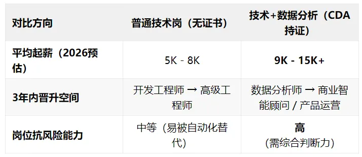 结论:2026年,高职计算机专业的你,手握的是通往数字世界的通行证。从技术岗扎实起步,用CDA证书拓展边界,你完全可以在“技术+数据”的双轮驱动下,驶向高薪、高成长的职业未来。🚀