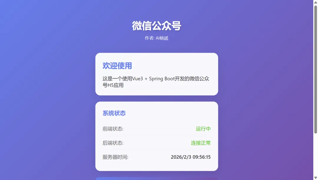 创建一个微信公众号项目,前端Vue3,后端Spring Boot要微信登录、用户中心功能,作者写AI杨遥