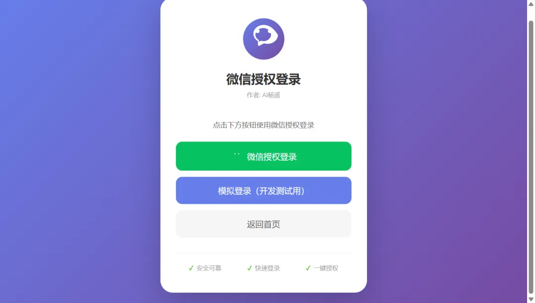 1. 创建一个微信公众号项目,前端Vue3,后端Spring Boot 要微信登录、用户中心功能,作者写AI杨遥2. 后端接口报CORS跨域错误3. 前端需要配置代理4. 创建一个首页,要漂亮一点(加4点要求)5. 安装依赖,启动服务,打开浏览器6. 做个微信登录页面(加3点要求)7. 做个用户中心(加3点要求)8. 测试一下完整流程,每一步都截图
