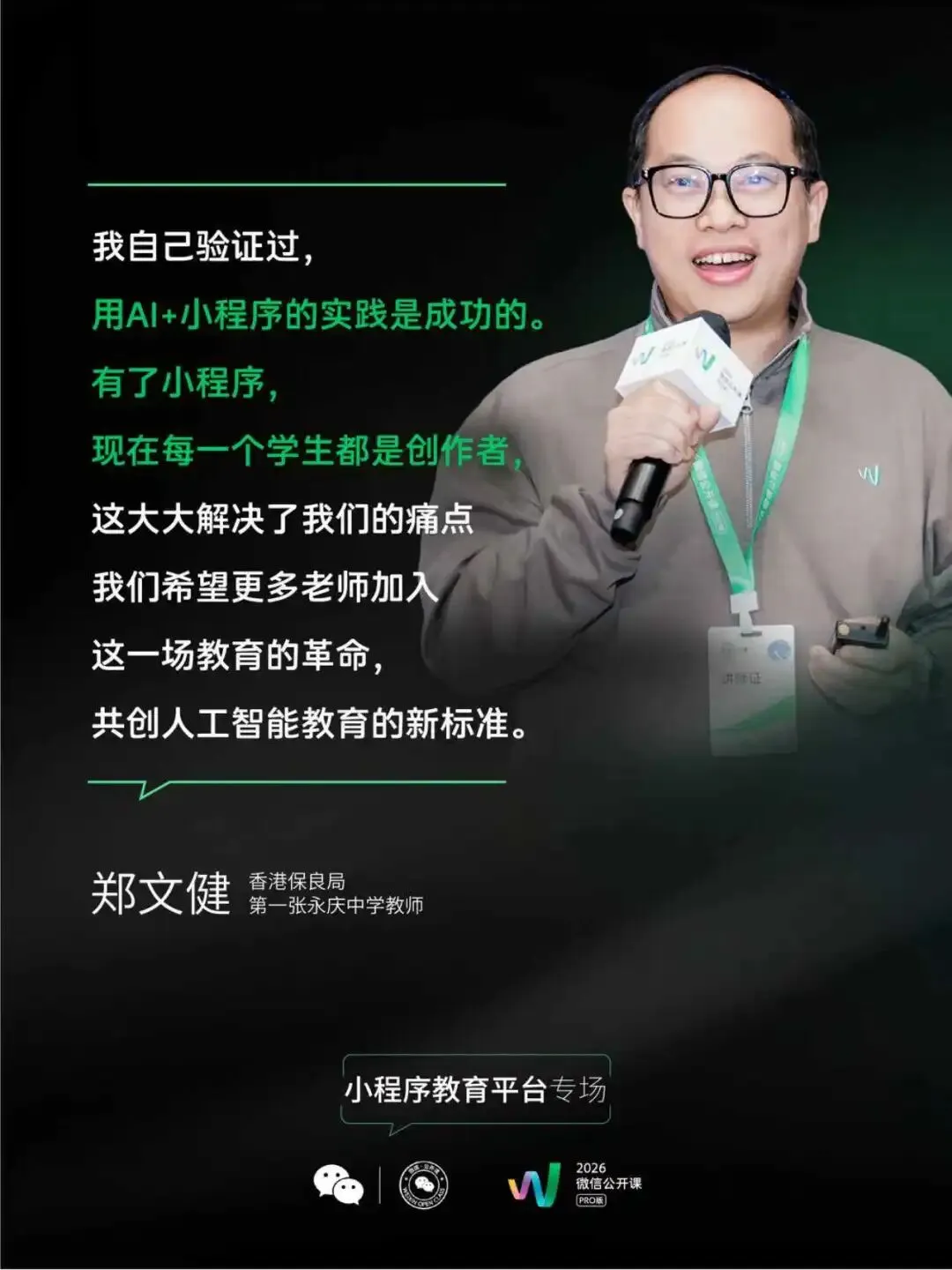 通过人工智能赋能教学改革,赋能青少年全面成长,未来,微信团队将继续在人工智能教育方面加大投入,希望更多教师、专家加入,共塑AI教育的新可能。