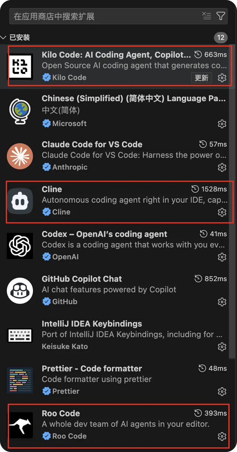 在 VS Code 中搜索 Kilo Code 或 RooCode 并安装