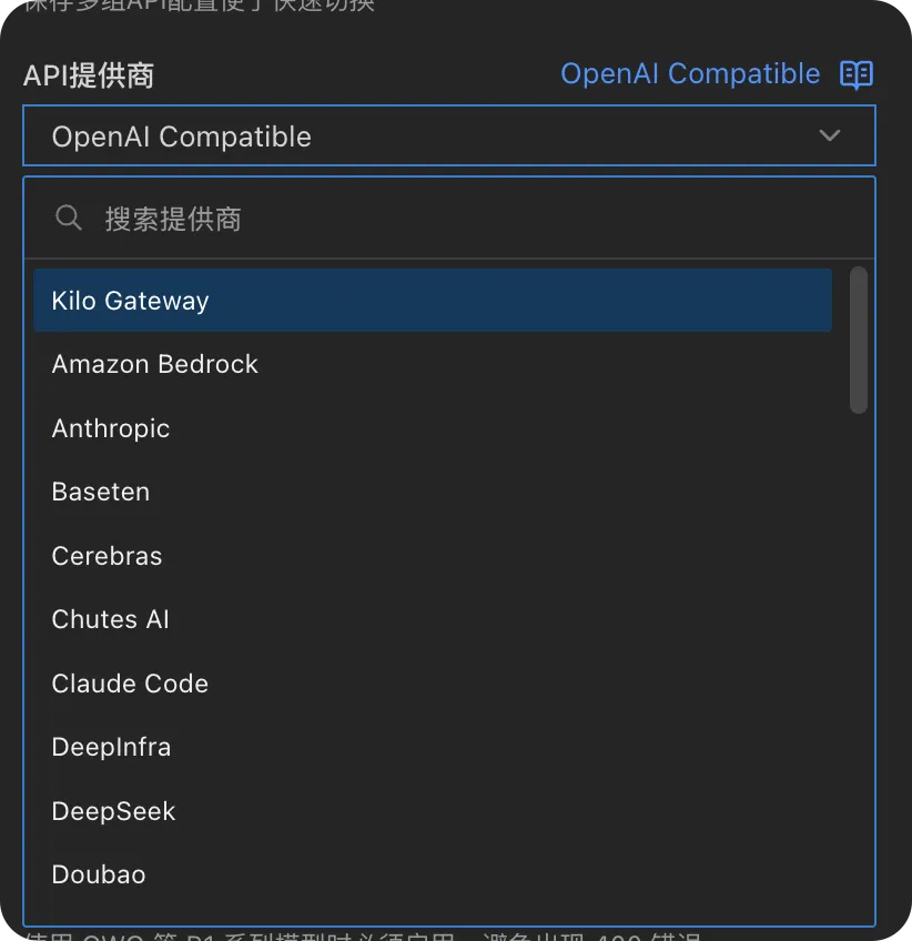 选择配置提供商,新增一个 OpenAI Compatible 的供应商