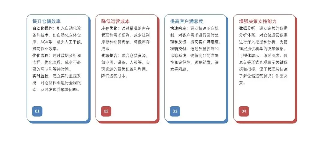 以智能流程替代人工重复操作,优化业务衔接并实时监控货物流转,提升仓储整体运营效率。通过精准库存管控,减少积压与缺货问题,整合核心资源实现最优配置,降低综合成本。快速响应订单需求,精准把控分拣、出库、配送全环节,保障按时准确交付,提升客户满意度。依托数据分析与可视化能力,为管理层提供精准决策依据,助力业务稳健增长。