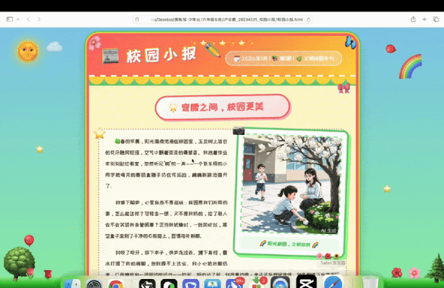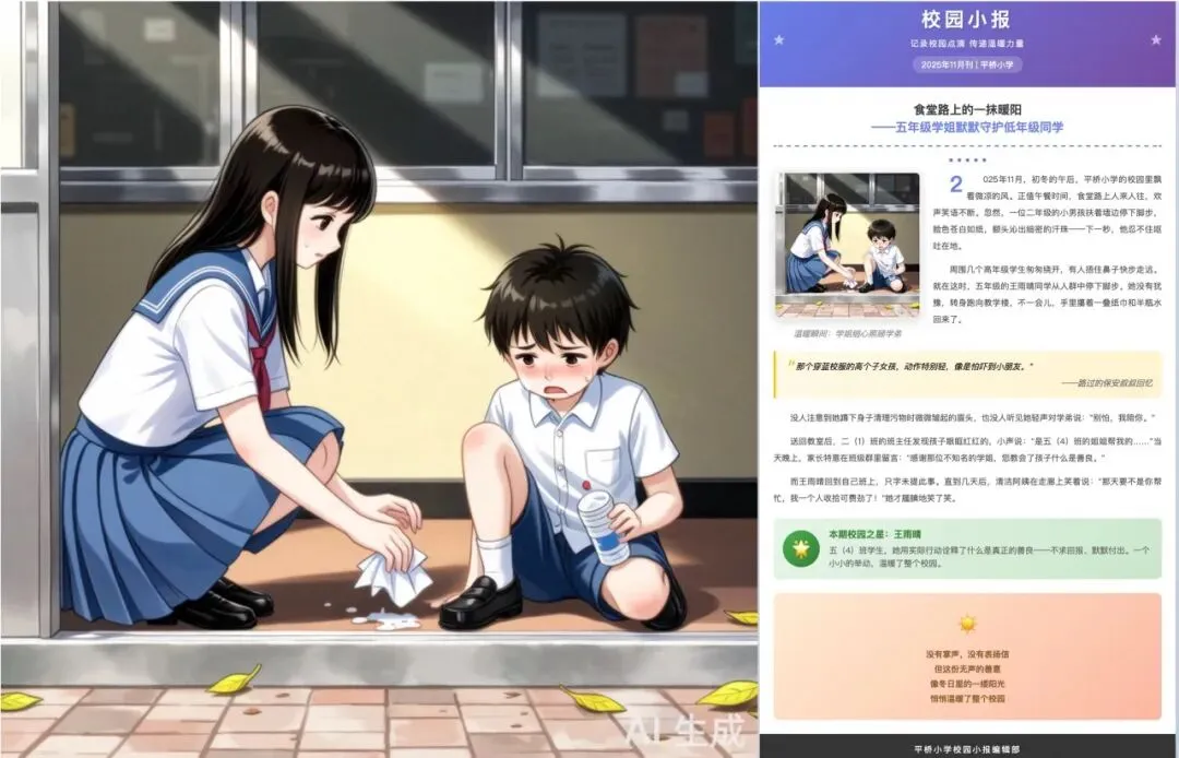 本堂课没有孤立地展示单一AI的“神奇”,而是将不同AI(少年云AI老师、千问)嵌入到创作链条的各个环节(优化文本、生成图片),使其成为隐于幕后的“生产性伙伴”。Qoder则在终点作为整合工具出现,确保学生能立刻获得完整的成就感。技术深度服务于教学目标的达成。