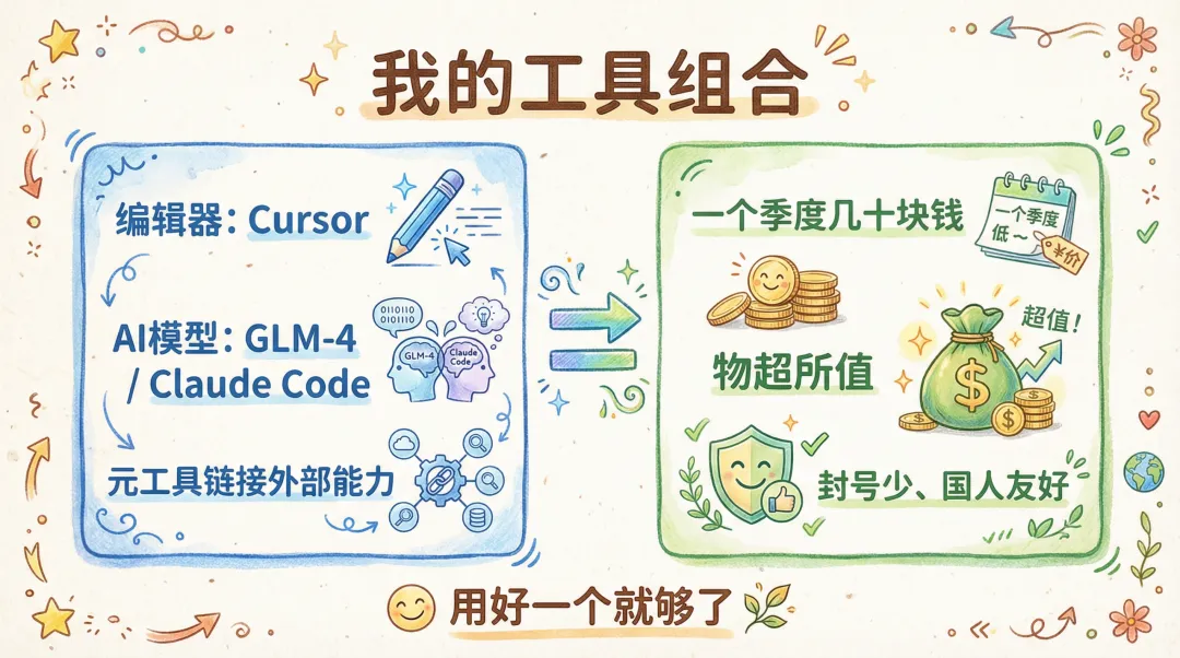 我用的还是 Cursor+Claude Code,但我没有用国外的模型,因为封号太严重,这一点对国人很不友好,所以我没有再用。